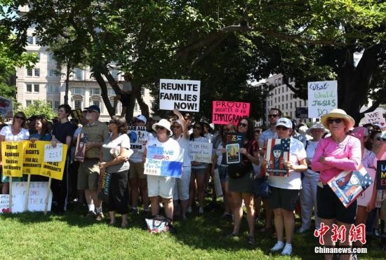 资料图:当地时间2018年6月30日,数千名美国民众聚集在白宫外举行示威活动,抗议特朗普政府强制实行“零容忍”政策,迫使众多非法入境者家庭“骨肉分离”。中新社记者 刁海洋 摄