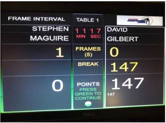 最终吉尔伯特在冠军联赛第五组中,面对马奎尔的比赛中,第二局开始向147满分展开冲击,最终连续围绕黑球清理完红球后,随后一杆清理完彩球,打出个人生涯第二杆147满分,也是官方统计下第147杆。官方统计第一杆147满分是1982年戴维斯在经典赛上打出,第100杆满分是塞尔比在英锦赛对阵沃顿的比赛中完成。