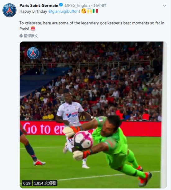 “无论你是在巴黎、帕尔马还是都灵,或是地球的另外一侧,你都永远是我们的一员。生日快乐布冯,最好的你没有变老,还在变得更好。”这是布冯41岁生日这天,尤文官推送上的生日祝词,尽管已经离开老东家半年,老妇人依旧为这名戎马半生都在都灵城度过的老将送上诚挚的祝福。就在同一天,巴黎圣日耳曼也在官方社交媒体为布冯“庆生”。