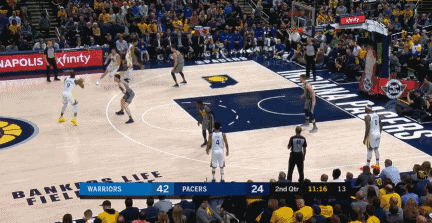 库里不久前在湖人主场摔一跤的囧迫情景,至今还令人记忆犹新。这一回,来到印第安纳的库里,又在场边抢尽风头。好在这次不是自己扣篮,而是好兄弟汤神单手飞身扣篮之后,库里在场边兴奋地站了起来,一脚踩到了自己的外套上,摔了个四脚朝天。