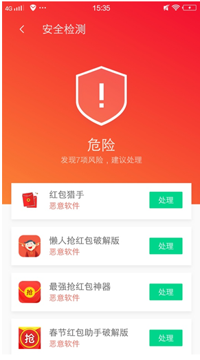 目前,王阿姨下载的抢红包病毒软件已被腾讯手机管家精准查杀,同期查杀的还有“秒抢红包”“春节红包助手破解版”“懒人抢红包破解版”等共7款病毒软件。腾讯手机管家依托腾讯自研AI反病毒引擎TRP-AI和自研杀毒引擎TAV,能够准确识别携带病毒的软件并进行查杀,为用户的手机、财产安全保驾护航。