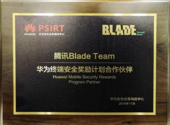 Blade被授予“华为终端安全奖励计划合作伙伴”称号