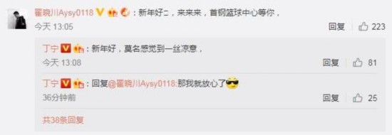 而这个小视频,还引来了北京男篮队员翟小川的注意,他给丁宁留言:新年好,来来来,首钢篮球中心等你。丁宁则幽默回复:新年好,莫名感到一丝凉意。两人这你来我往逗乐了网友,有网球表示“下次你们的全明星可以带丁宁一个吗?”还有人让丁宁别怂,“首钢也是你的主场啊!”