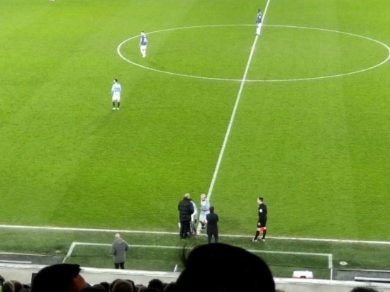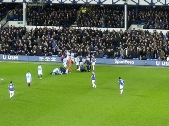 易边再战,刚刚开场不久斯通斯和沃尔科特就因为头球争顶双双倒地,裁判赶紧招呼两队队医入场,虽然两边看似相撞地非常严重,但经过双方队医的诊断都无大碍,都可以继续比赛。