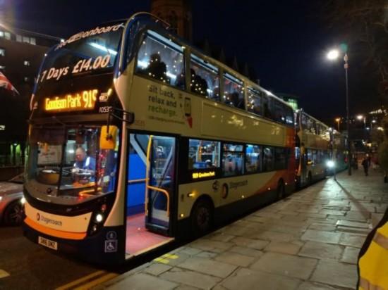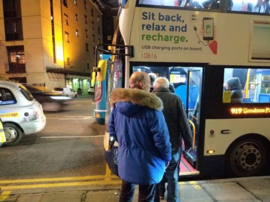 坐上直达古迪逊公园球场的919路大巴,我在车上也想随机采访一下埃弗顿球迷对今晚比赛的看法。没想到坐在车后部的老大爷微微一笑,拉开外套的拉链,天蓝色的球衣,老版鹰头队徽表明他是个至少“30年”的曼城球迷。