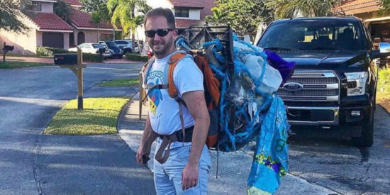 原因很简单,他是背着13.6公斤的垃圾跑完全程的,这些肮脏、破烂甚至有些发臭的垃圾全部来自迈阿密的比斯坎海湾以及周边的红树林保育区。