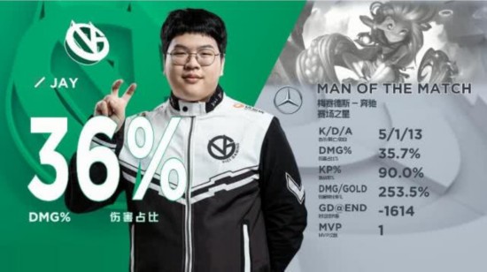 34分钟,V5直接rush大龙,却被VG打出一波一换三。40分钟,VG强行rush掉第三条大龙。随后高地的团战,V5一波一换四顽强守下。46分钟,VG大龙坑一波一换四拿下比赛。