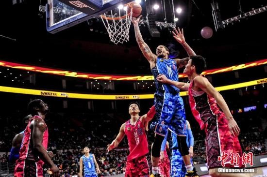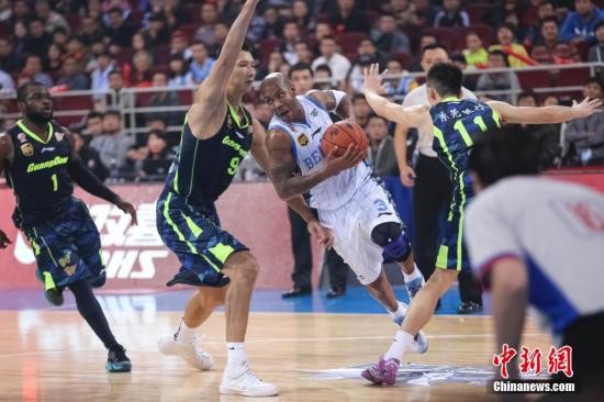 资料图:广东队(蓝)在比赛中。中新社记者 熊然 摄