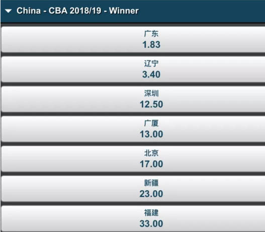 夺冠赔率广东力压辽宁