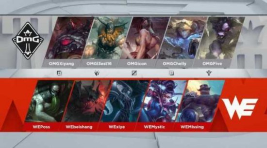 WE:上路Poss(金旻哲)、打野beishang(姜志鹏)、中路xiye(苏汉伟)、下路Mystic(陈圣俊)、辅助Missing(娄运峰)
