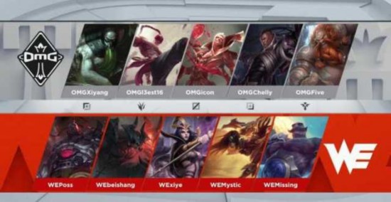 WE:上路Poss(金旻哲)、打野beishang(姜志鹏)、中路xiye(苏汉伟)、下路Mystic(陈圣俊)、辅助Missing(娄运峰)