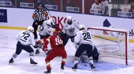 41分56秒的时候,海军上将门前陷入混乱,帕罗拉和骆嘉的射门均被挡出,英如镝嗅觉敏锐,捕捉战机的能力超强,他把握住机会,得球后直接一杆打门球进,这是他个人在KHL的首个进球,这也是中国冰球的骄傲和突破。