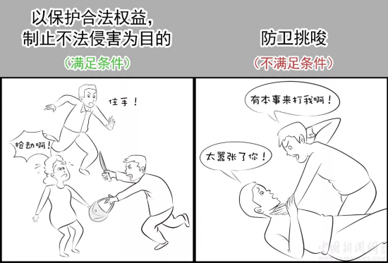 大多数正当防卫是采用损害不法侵害者的利益的方法实施的,法律为防止其滥用,严格规定了正当防卫的成立条件。只有合法的防卫行为,才属正当行为,不负刑事责任。