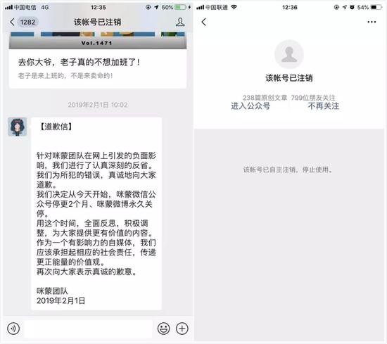 据了解,2月1日,咪蒙在微博上发布致歉信,致歉信中表示,即日起微信公众号停更2个月、咪蒙微博永久关停。
