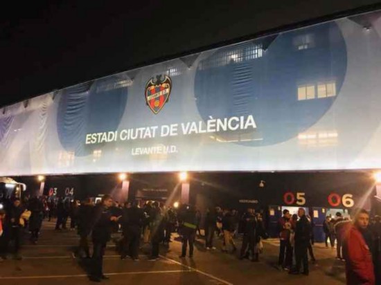 赛后聚在场外不愿离去的莱万特球迷们
