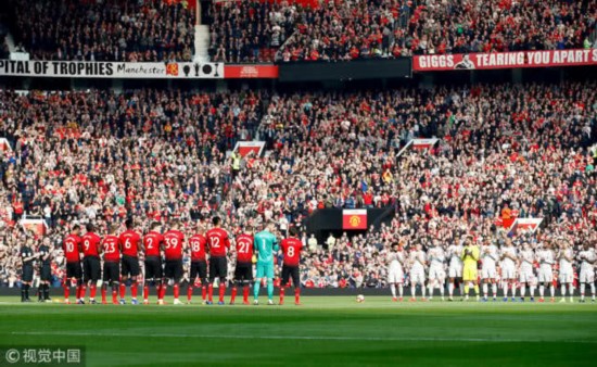 赛前,两队球员为刚刚去世的曼联名宿埃里克哈里森鼓掌致意一分钟。哈里森是曼联青训的教练,他曾亲手培养了后来闻名世界的92班成员。然而球迷之间的剑拔弩张比赛还未开始就显现了,鼓掌最后几秒,利物浦球迷开始高喊’Liverpool’助威,而曼联球迷则用嘘声表达了不满。