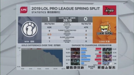 比赛后期,26分钟IG拿下大龙后又率先击杀对方EZ,随后带着大龙BUFF推进。27分钟时IG下路直推,打出对方团灭顺势拿下比赛。