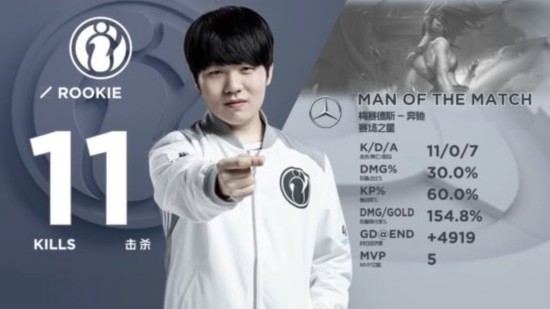 IG:上单TheShy(姜承録)、打野Ning(高振宁)、中单Rookie(宋义进)、ADC JackeyLove(喻文波)、辅助Baolan(王柳羿)
