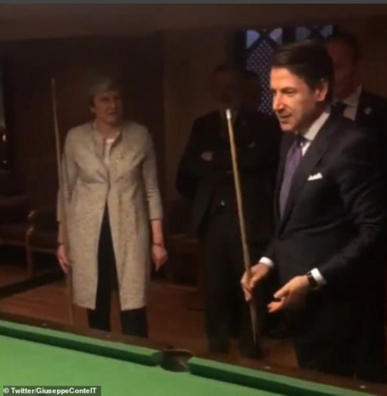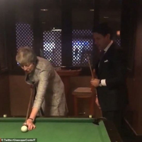 在这场斯诺克外交活动中,特蕾莎-梅上来就向朱塞佩-孔特坦言:“我会得到很多人的支持,但我很绝望。你得教我怎么打。”