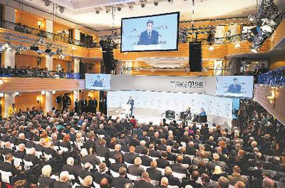 图为2月15日,英国国防大臣威廉姆森在第55届慕尼黑安全会议(慕安会)上讲话。新华社记者 逯 阳摄