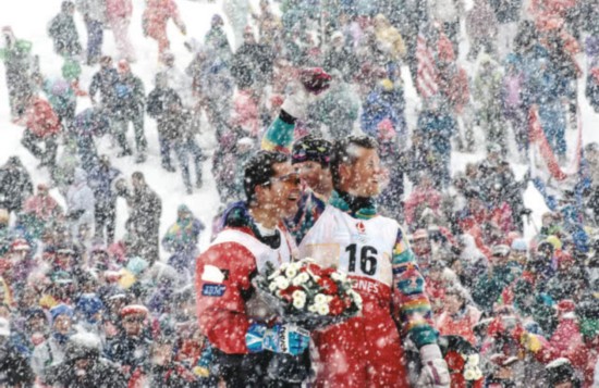 在漫天大雪中,格罗斯皮龙登上了冠军领奖台。基莱斯-查帕兹说:“每一个法国人都想感谢他,他在比赛中增加了很多人性化的东西。”