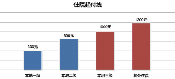 住院起付线本地一级、二级、三级医疗机构分别调整为300元、800元、1000元,转外住院调整为1200元。