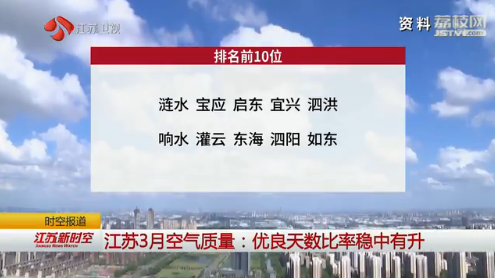 从54个县(市、区)PM2.5月均浓度排名情况看,涟水、宝应、启东、宜兴、泗洪等地位列前十。