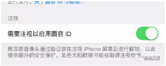 开启这一功能看之后,只有注视iPhone后,才能实现屏幕解锁,在虹膜检测之外更添安全性。