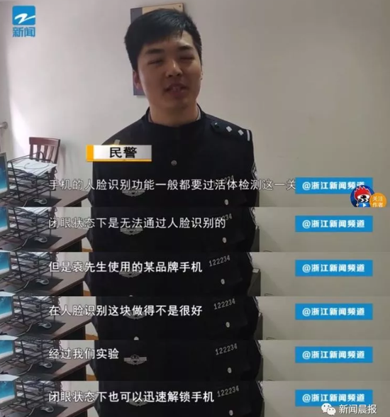 警局相关工作人员介绍道,一般情况下,人闭眼的时候是无法通过手机的人脸识别的,但袁先生的这款手机,人脸识别的功能不完善,闭眼状态下也能通过检测,才让心怀不轨的人有隙可乘……