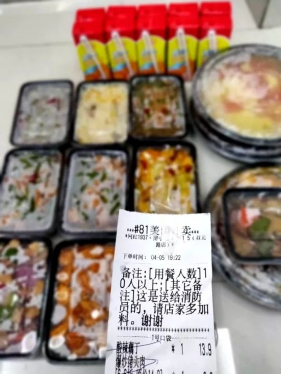 “这是送给消防员的,请店家多加点料,谢谢!”