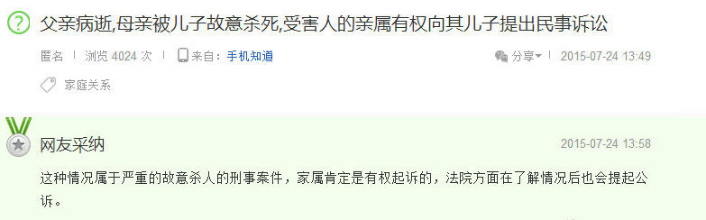 7月24日,百度知道上出现了一个奇怪的匿名提问:父亲病逝,母亲被儿子故意杀死,受害人的亲属有权向其儿子提出民事诉讼?案情公布后,吴谢宇的几位亲属在网上搜到了这条提问,觉得描述的细节与吴谢宇家里的命案惊人的一致,他们甚至怀疑提问者就是吴谢宇。