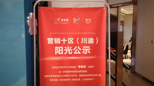 4月23日,在销售中心现场,封面新闻记者还看到碧桂园对员工不当行为“零容忍”的公示。