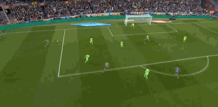 第62分钟,登贝莱直塞,苏亚雷斯禁区右肋抽射被罗贝尔-皮耶尔挡出,比达尔弧顶处停球,梅西禁区右肋急停扣过后卫低射远角,1-0。