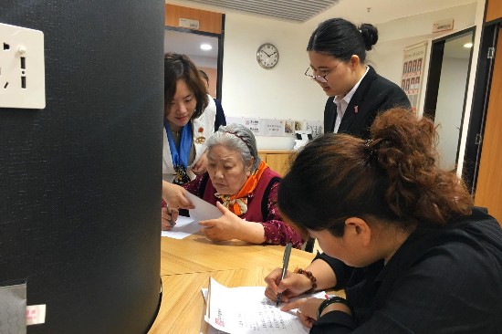 李女士与母亲进行遗嘱抄录。摄影/新京报记者 马瑾倩