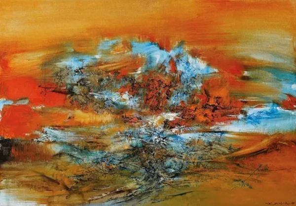 这时的赵无极已看过人生百态、走过生死别离。绘画早已信手拈来,泰若自如、自在悠扬,给人一种从容的淡定。