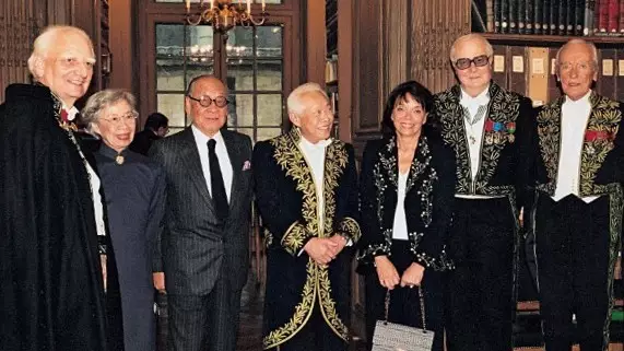 赵无极与贝聿铭在巴黎杜勒丽花园·1990年 巴黎·法国国家艺术院院士授予仪式上·2002年