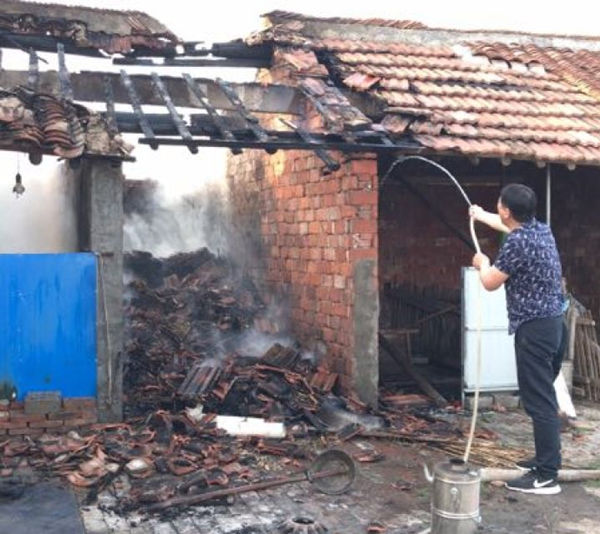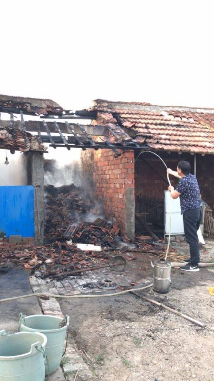 事故造成一间房屋被毁,所幸主屋无影响。村干部和村民脸上满是黑灰,都吁了一口气。