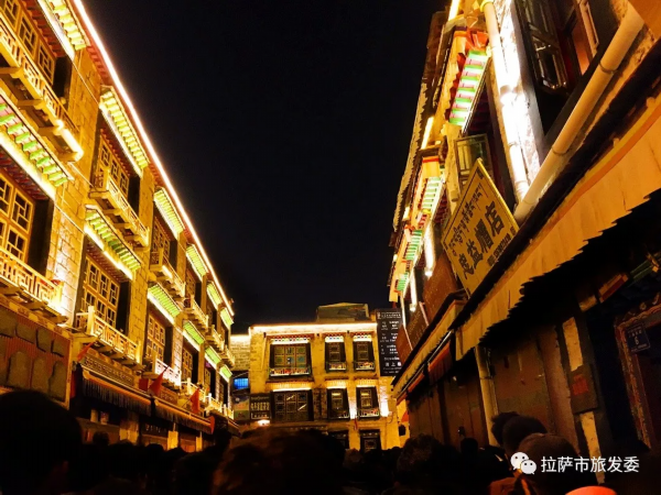 八廓街街区的灯光则是“铺天盖地”,