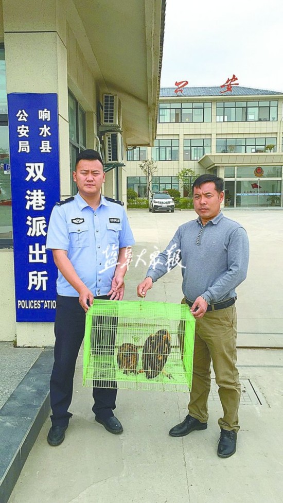 杜爹爹本想自己为它们治伤,但他却不知道怎么做。于是便联系本村在双港派出所工作一名辅警,辅警得知情况后立即向值班民警汇报。值班民警薛警官让杜爹爹将“猫头鹰”送到双港派出所,根据其体态特征查询发现该野生鸟类的体貌特征与国家二级保护动物猫头鹰十分相似,随后联系县农林局工作人员。第二天,经县林业局的专业人员辨认得知:该野生鸟类确是猫头鹰仓鸮,又叫猴面鹰、猴头鹰,属国家二级保护动物。
