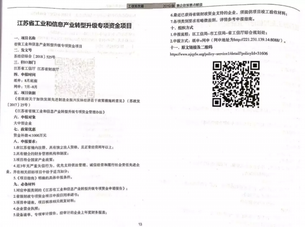 本次发放的《惠企政策要点解读》手册最新版本条块明晰,包括经信发改、技术改造投入、软件开发、创新产品、专精特新等相关政策,内容全面,共详细解读了包含“2019年南京市委一号文”配套政策在内的最新涉企优惠政策163项,该手册对各项目的政策依据、申报时间、申报对象、政策优惠及申报流程进行了一一解读,同时,企业还可以通过扫描每篇文末二维码或点击链接查看原文。