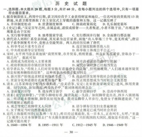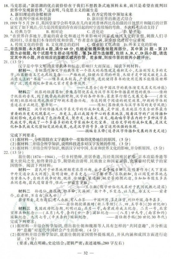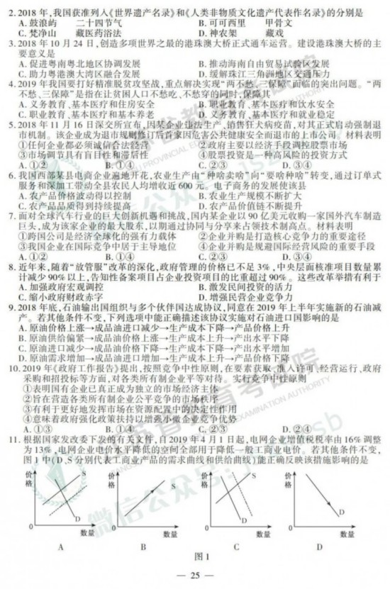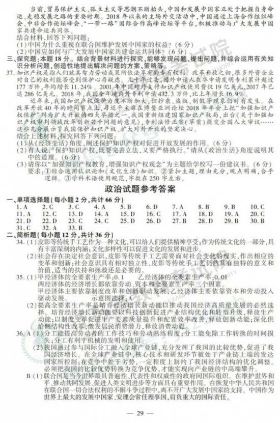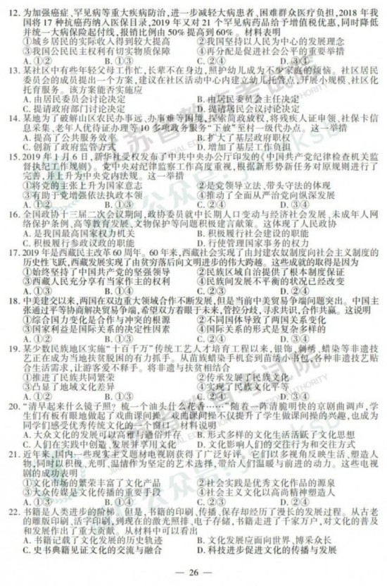 2019年高考政治、历史、地理试题+答案