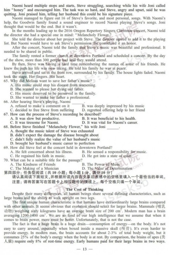 2019年高考英语试题+答案