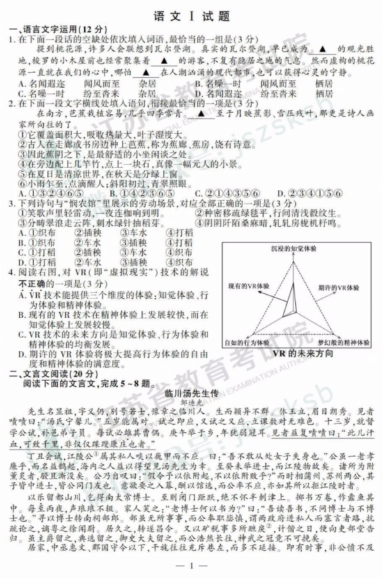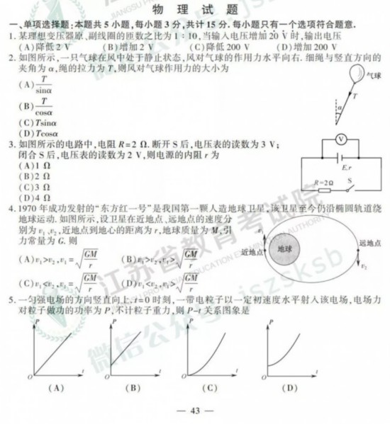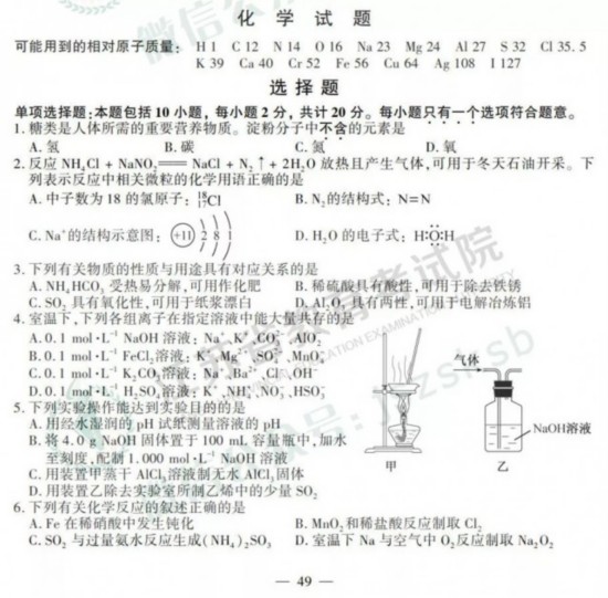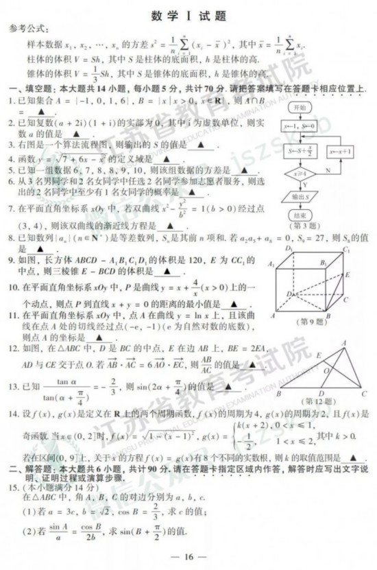2019年江苏高考试卷
