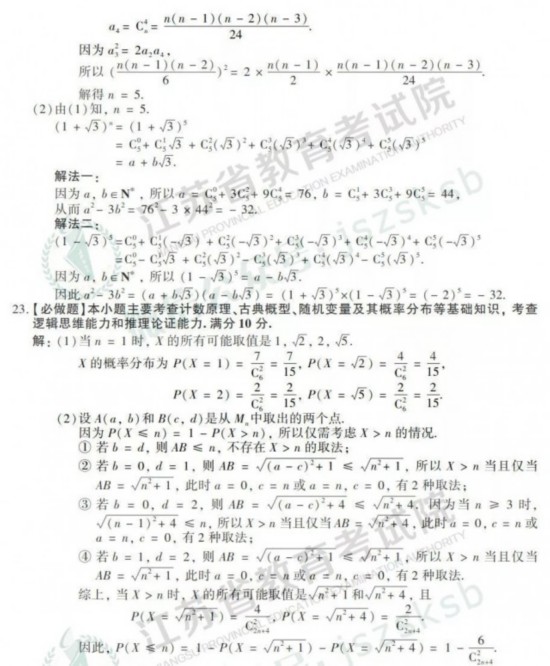 2019年高考数学试题+答案