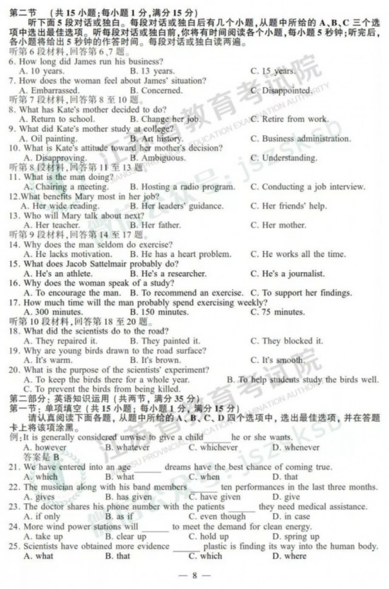2019年06月11日 01:47:35 | 来源:江苏省教育考试院