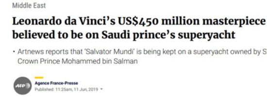 法新社11日报道说,10日,伦敦的艺术品交易商肯尼 沙克特在给一家艺术新闻网站“Artnews”撰文时称,这幅画现在被存放在沙特王储穆罕穆德 本 萨勒曼(MBS)拥有的超级游艇上。