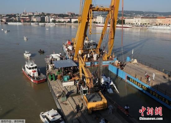 资料图:当地时间11日,匈牙利沉船被打捞出水。