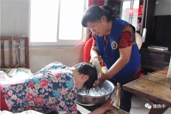 “她是由民政局补贴,海阳养老中心安排来为我母亲提供居家养老助洁服务的,但她却热心地为我忙前忙后。” 陆美一边洗着头,一边细数着丁荣美的好,“原则上每次服务是一小时40分钟,一个多小时能干多少事?她却能把所有的活通通干一遍,又是洗衣服、洗被子、打扫卫生,又是我们娘俩洗澡、洗头,经常一忙就是一上午!”