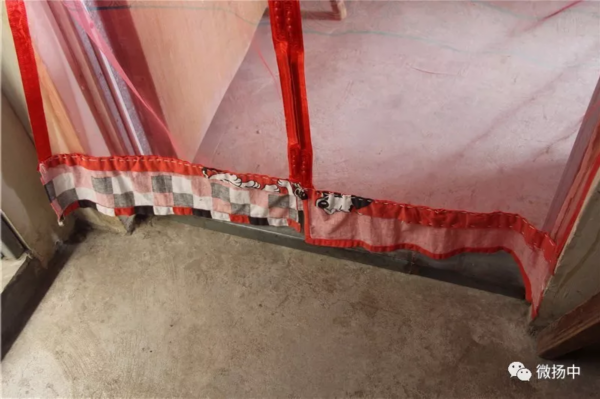 △丁荣美帮陆美家买的纱门有些短,又从家里找了些旧布缝了上去,手工不错哟~~