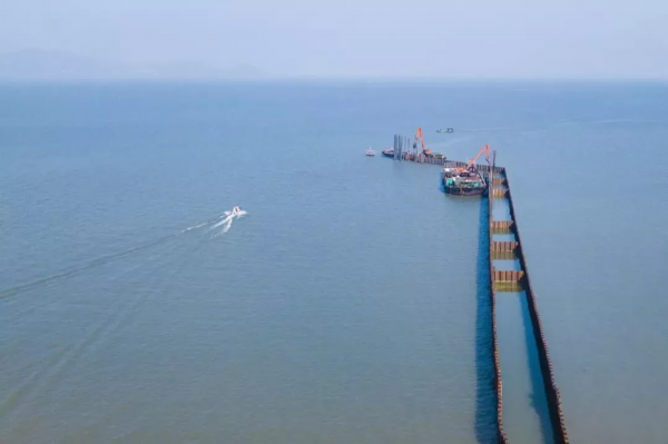 已完成第4仓拉森钢板桩围堰施工、隧道主体底板1600米和顶板760米、开挖土方190万方、供应混凝土25万方。